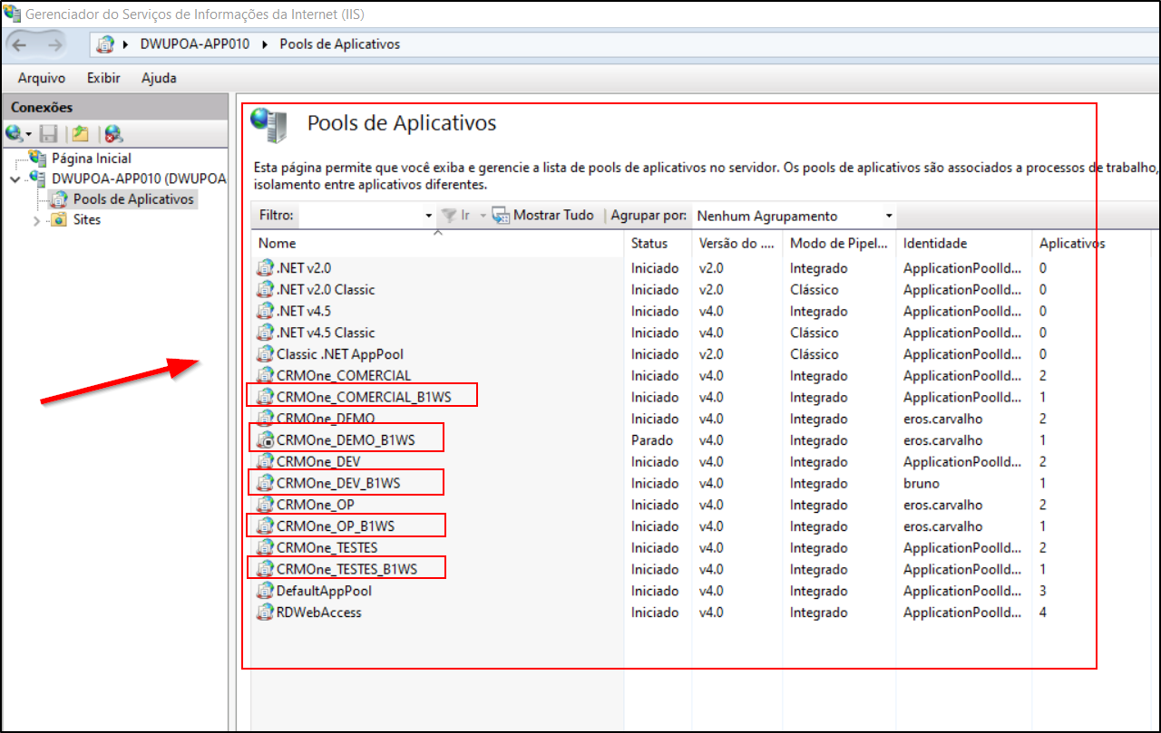 Acessando os Pools de Aplicativos