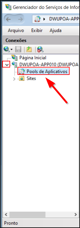 - Selecione a opção Pools de Aplicativos.