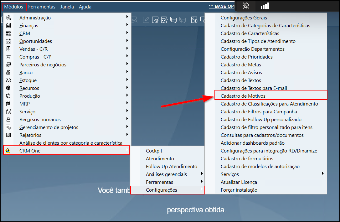 Os motivos de atendimentos no CRM One permitem detalhar as ações realizadas nos atendimentos, especialmente quando vinculados a itens, garantindo maior rastreabilidade e padronização das informações.