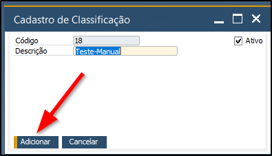 - Marque a flag Ativo, se desejar utilizar a classificação.