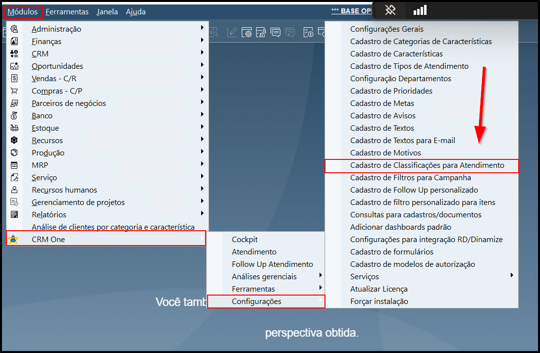 - Clique em CRM One.