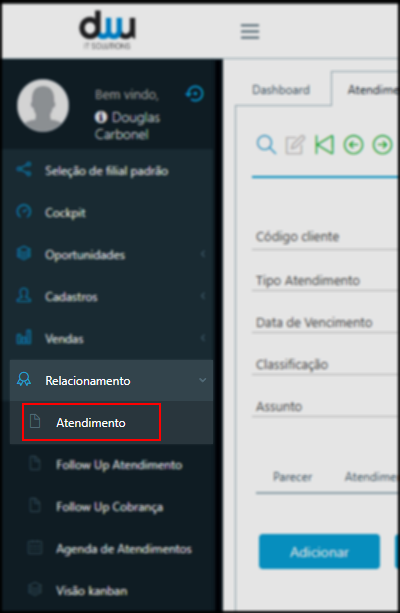 Acessando o módulo de atendimento