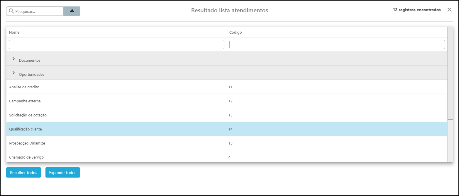 Após informar o cliente, o sistema exibirá um modal com os tipos de atendimento disponíveis.
