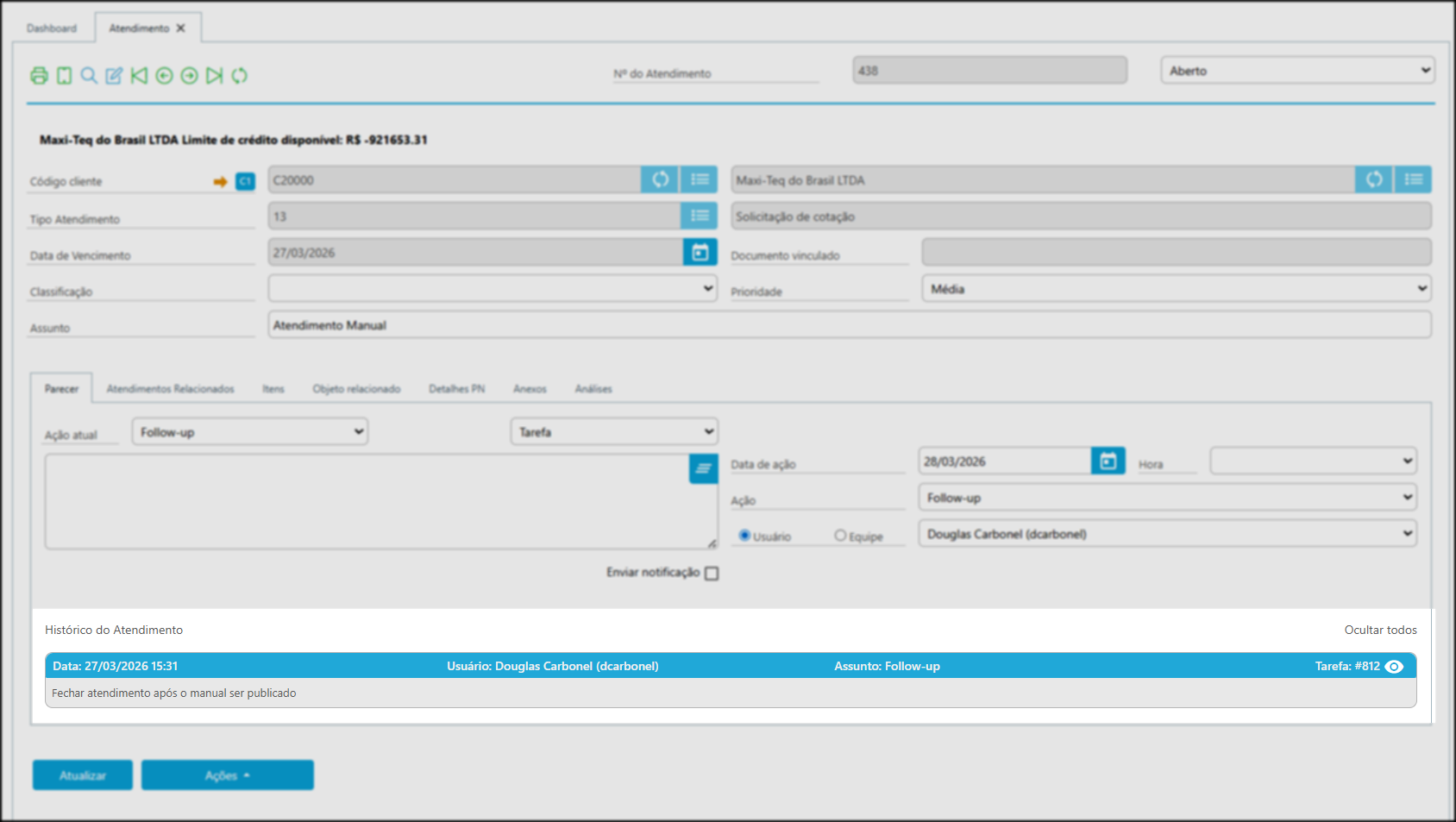 Cada novo follow-up registrado será adicionado automaticamente ao histórico.