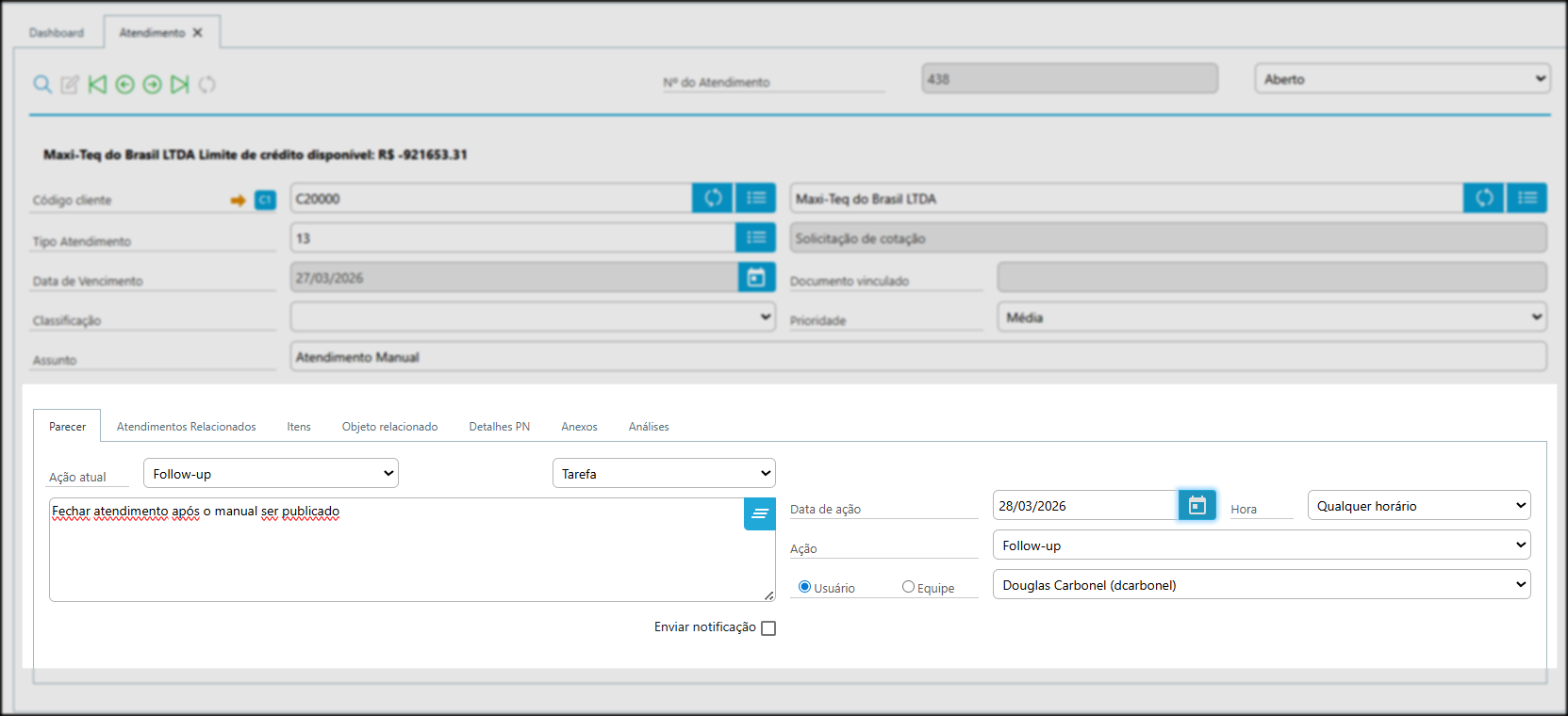 "Fechar atendimento após o manual ser publicado"
