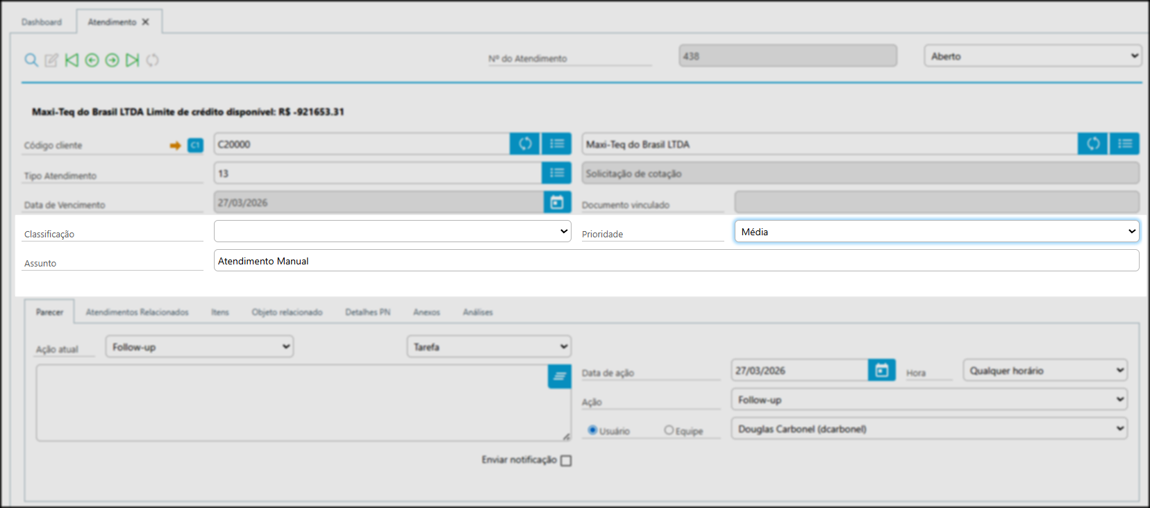 Após salvar, o atendimento ficará disponível com todas as informações registradas.