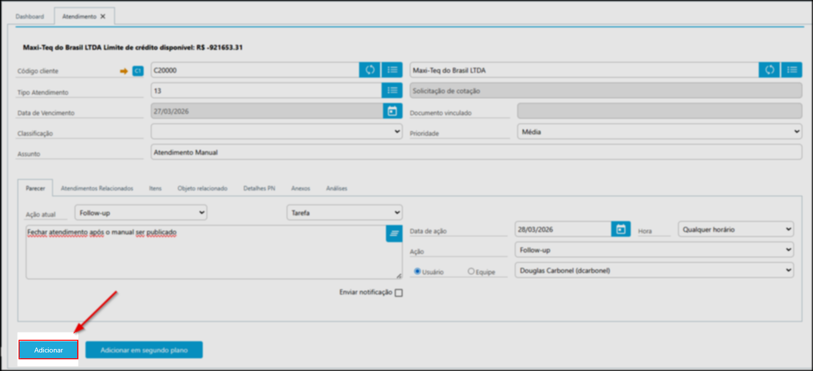Como cadastrar um novo atendimento