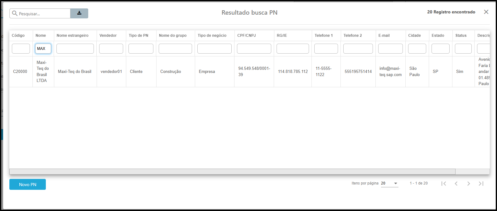 - Clique no cliente desejado para selecioná-lo.