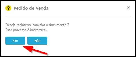 Ao cancelar o pedido, será exibido um questionamento informando que o processo é irreversível.