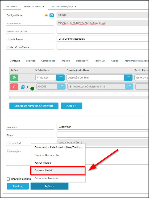 - Evite cancelar pedidos de venda por engano, pois a ação é irreversível.