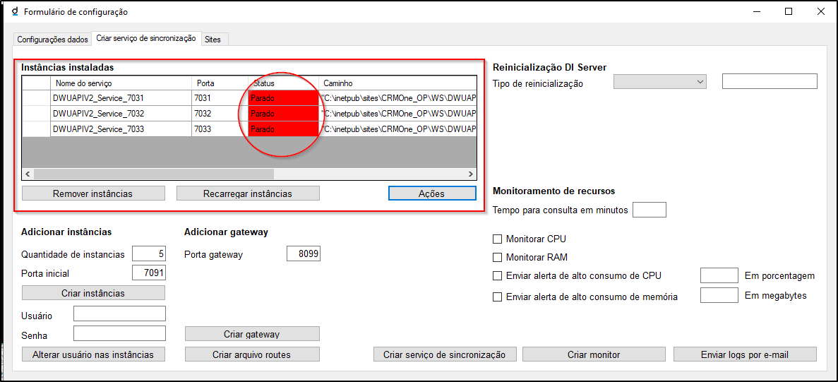 Aguarde completamente a parada dos serviços antes de iniciar novamente para evitar inconsistências.