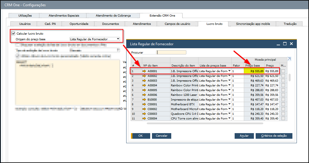 - O CRM One busca o valor do item na lista de preço definida para lucro.