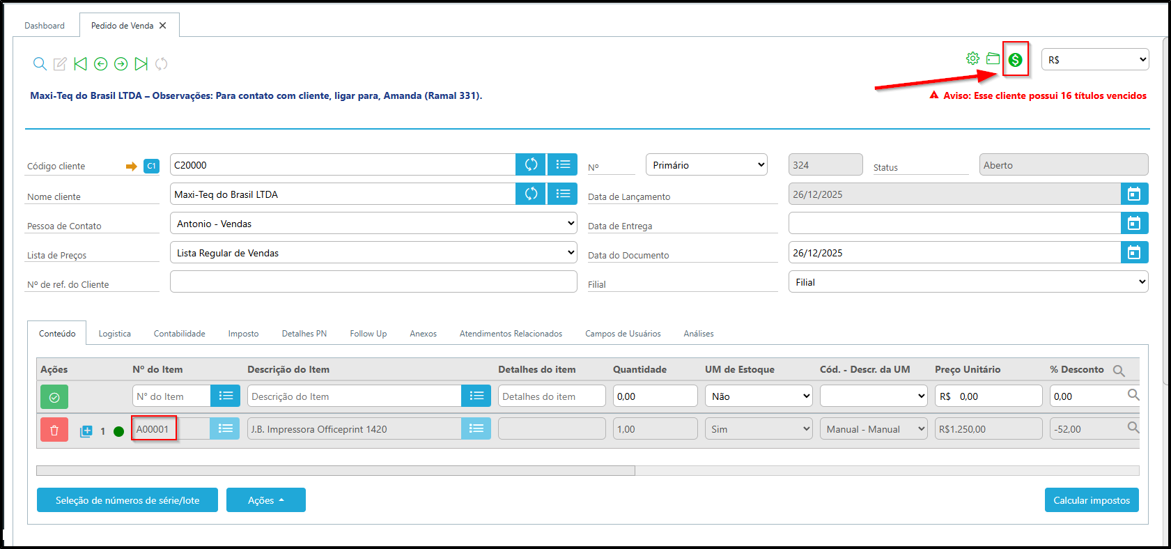 1️⃣ Aplicar desconto do cliente sobre o valor da linha